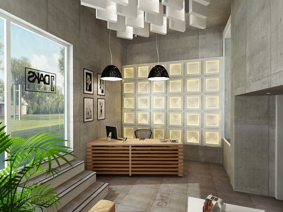 The project is a part of a office building which houses an export oriented unit. As the views suggest, this would be the formal part of the office where most of the clients would come. The ambience needs to be warm, welcoming and sobre.
