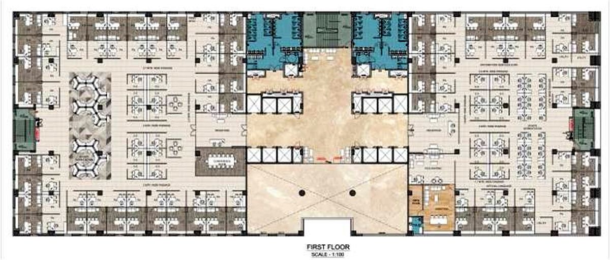 A competition entry, the design spread over 150000sqft of area dealing with different departments of employees provident fund office, breakout zones, meeting area, conference rooms and lounges etc. The design design was latest, coupled with state of art technology providing the employees truly modern corporate feel and promote efficient work culture.