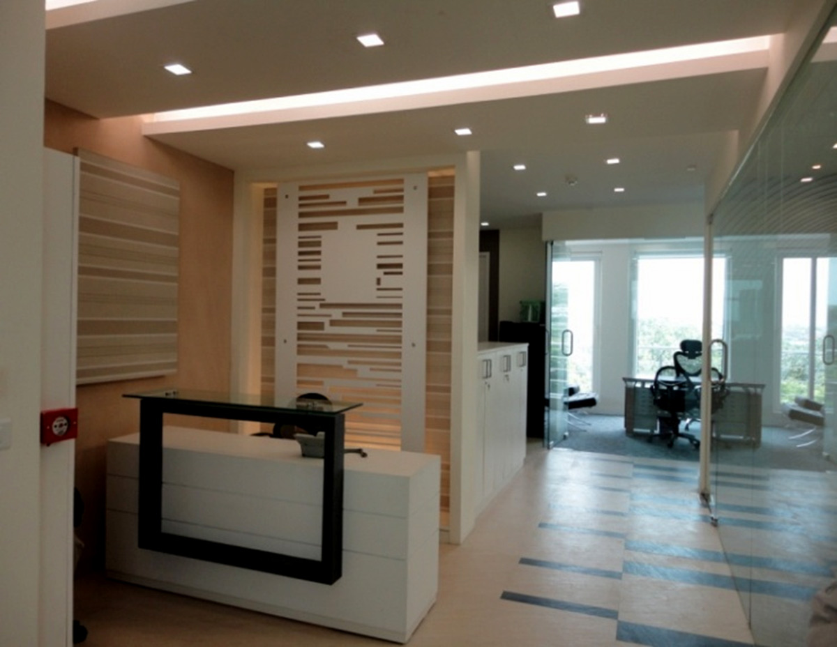 The finishes used here were very carefully selected and detailing done very minutely. This specific floor was the CEO’s floor with reception overlooking the conference room which had a 3D wallpaper to enhance the length of the conference room. The conference table was designed to be in glass top with P.U painted wooden base on carpeted floor.