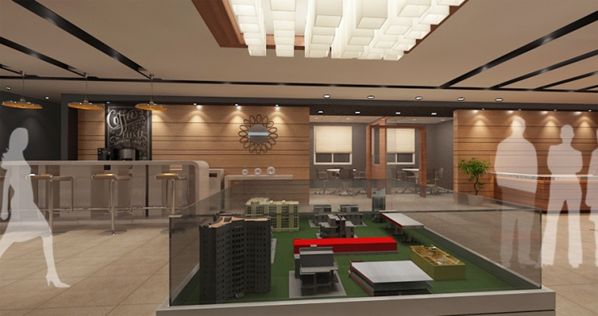 Embrace is the keyword to the interior design of this marketing office, with the milieu of the space to be very welcoming, warm and fresh. The solid wood panelling, the specially designed lighting chandelier over the model display area and the cafe are some of the noticeable design features of this project.