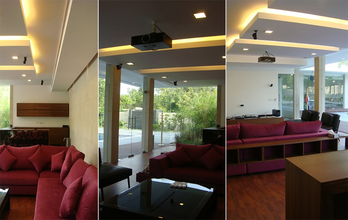 Extension of an existing farmhouse, this zone was designed as a party zone along with spaces for a lounge, pool table, spa and swimming pool- all equipped with state of the art amenities like a house theatre system along with water proof speakers in swimming pool to name a few. The approach to design was very simple and direct. Subtle combination of direct and indirect lights, richly carved stone cladding in the lounge, large toilets with an open to sky dedicated rear garden and a pool side bar surely made this place very celebrative.