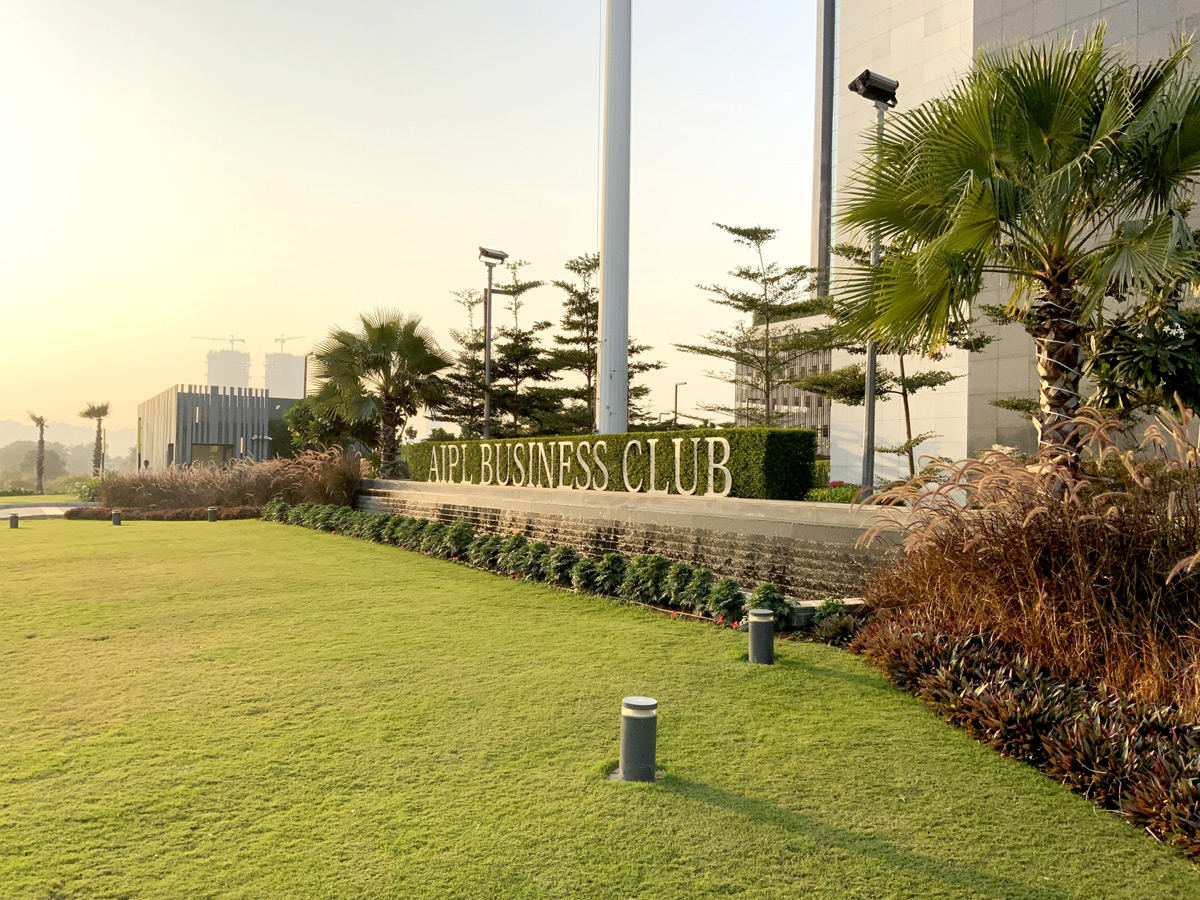 AIPL Business Club, Gurgaon, stands out from a large foreground plaza with its stark, crisp facade massing, interspersed with multiple terraces and landscaped decks, making it one of the most upmarket and contemporary workspaces in Gurgaon. The green glades on both sides of the corner plot add to its foreground depth, complemented by an articulate streetscape design along the abutting roads