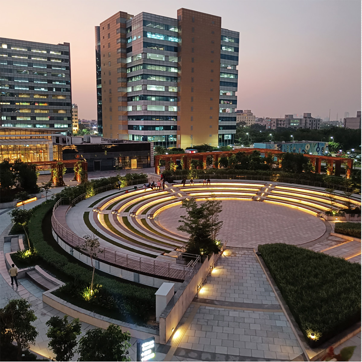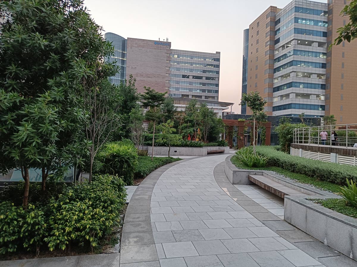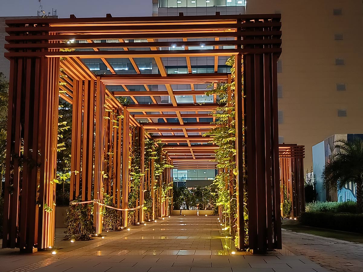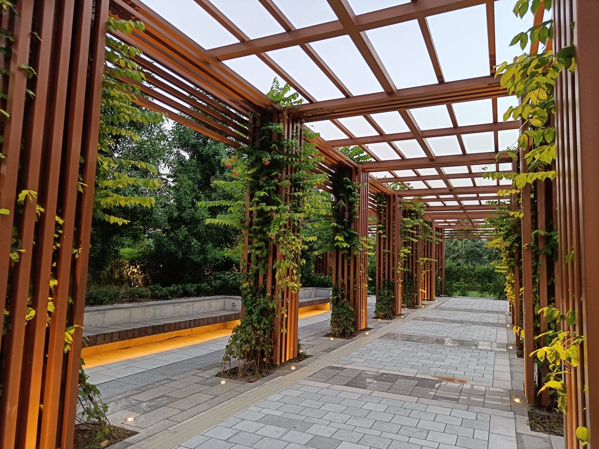 The dated appearance of this corporate park will soon be revitalized with a fresh touch of international design through the new landscape plan. Designed as an extension of the green amenities block by RBTA, the landscape features an organized urban forest with shaded groves. The proposed experience of the green spaces is further enhanced by wooden pergola walks, providing comfort and charm to the campus commons.