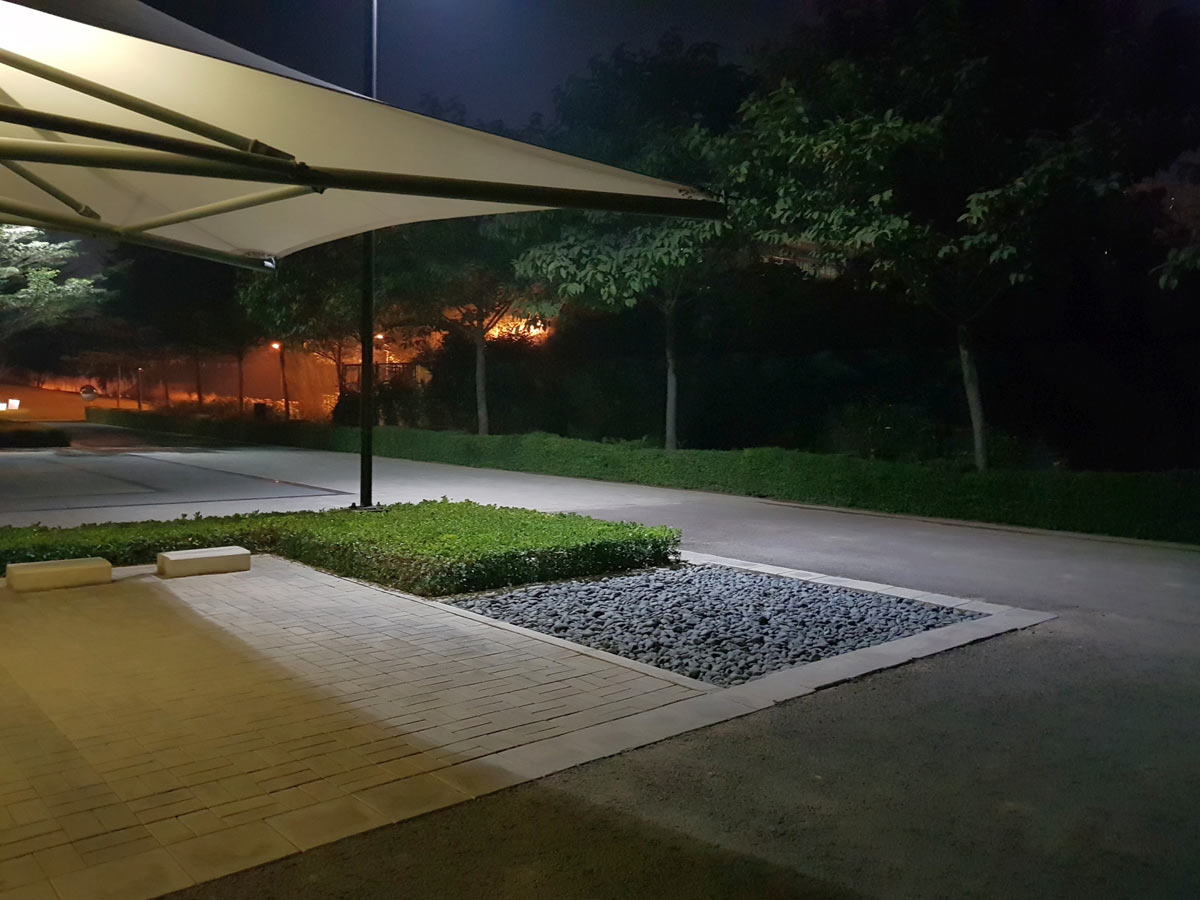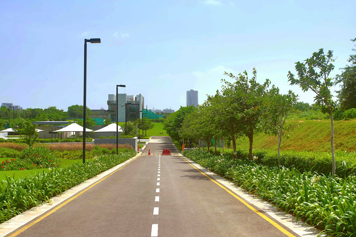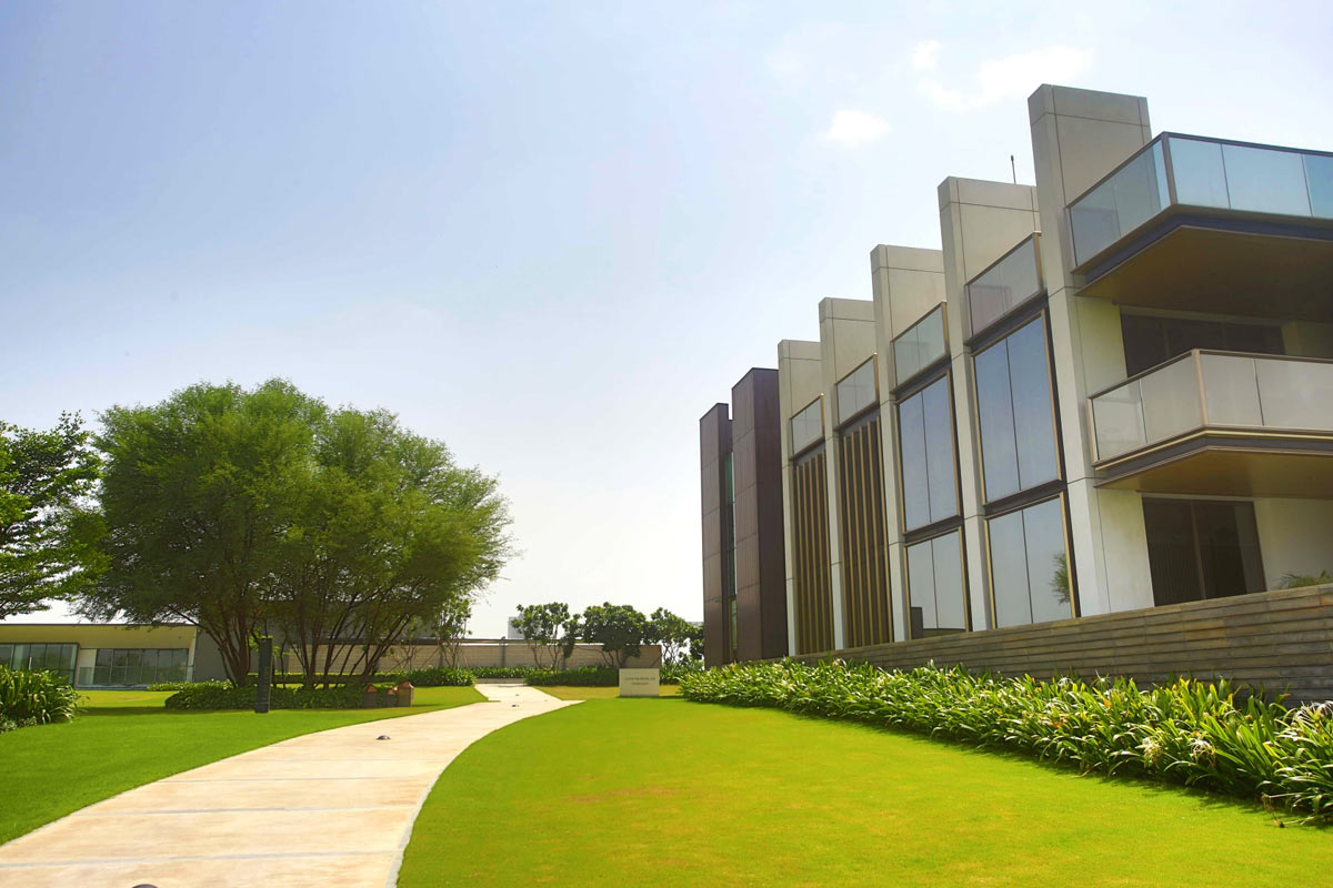 The site is located in Gurgaon, situated on an arid tract of land and a low lying zone characterised by poor soil quality and hot, dusty winds. The experience center has been designed as a green oasis within this challenging environment, employing a minimalistic approach with crisp detailing and a natural drainage system to sustain the garden.