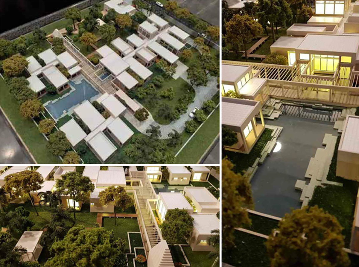 This project is being planned as a unique farmhouse experience, where the focus is on creating the atmosphere of a tropical forest amidst the farmland developments of southwest Delhi. Each room unit is designed to extend from a central circulation trunk and will be enveloped by greenery. These green fingers evoke the sense of individual cottages nestled in the woods.