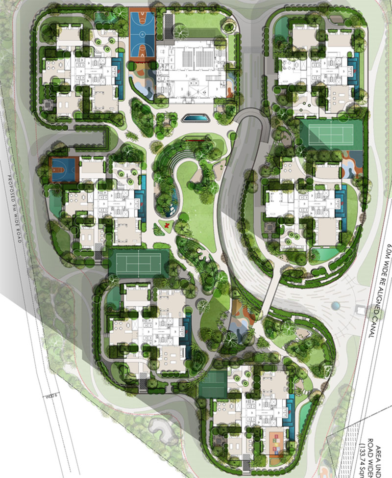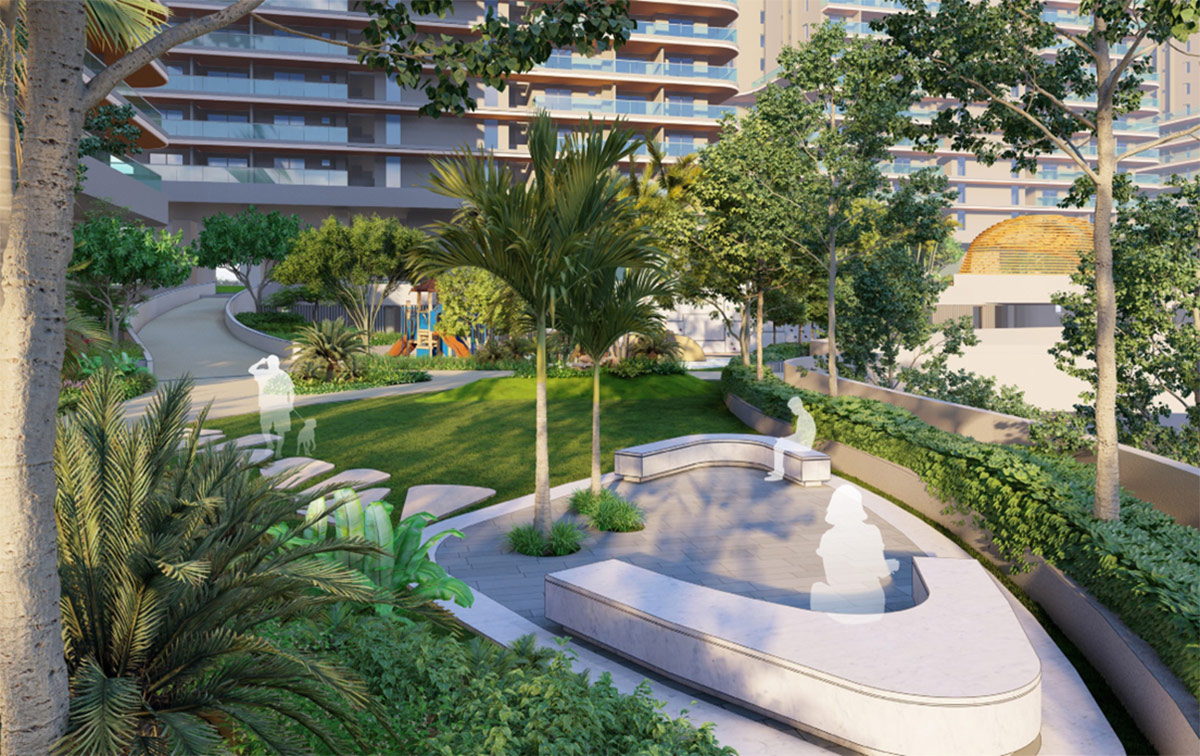 The stilt areas have been elevated to a double height, allowing the landscape to flow seamlessly through, creating accessible and engaging spaces beyond the towers. These stilt zones provide shaded areas with various amenities spread across the podium levels.