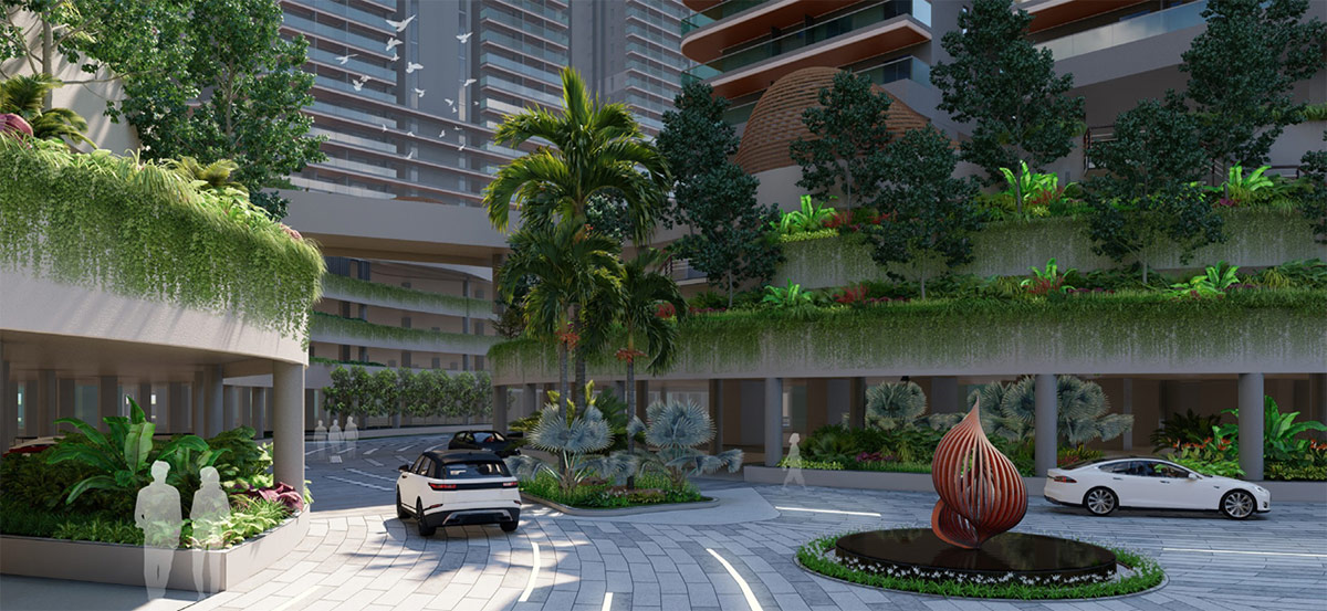 The Fortune Grande project is a high-density development featuring very tall towers. The open spaces have been thoughtfully designed across different tiers and levels.