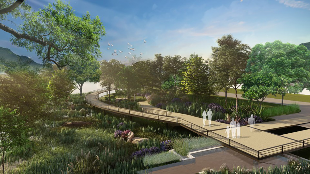 The site runs parallel to an active seasonal stream, providing riverine edge treatments and sponge landscapes along its banks, best experienced through a non- intrusive boardwalk. This approach aims to invigorate the mind, body, and spirit while promoting harmony with nature and enriching the overall environment.